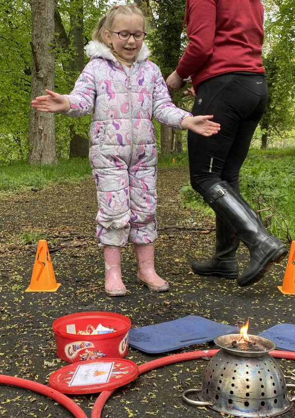 Forest School Early Level girl makes a flint fire Published November 11, 2022 at 600 × 850 in Early Level